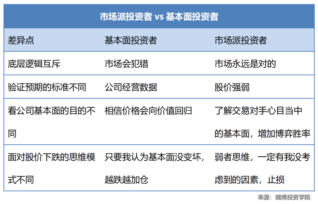 黄松杰认为,市场派的信仰应该是技术分析三大假设:市场行为包含一切信息、趋势会延续和历史会重演。以三大假设作为底层逻辑,他认为行情是由震荡和趋势拼接而成,趋势是可以分为不同级别的。他总结了市场派和基本面投资的主要差异,帮助大家更好地理解什么是市场派。